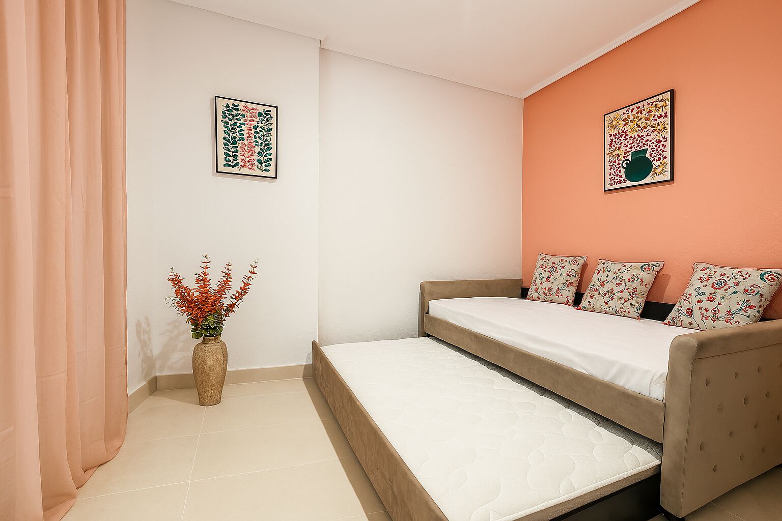 Apartamento completo de 80 m² con 2 dormitorios, 4 camas y 1 sofá cama.